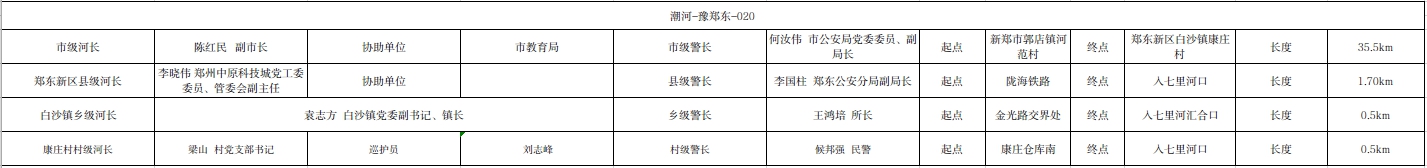 关于潮河郑东新区白沙镇段河长、警长名单的公示(潮河-豫郑东-020)