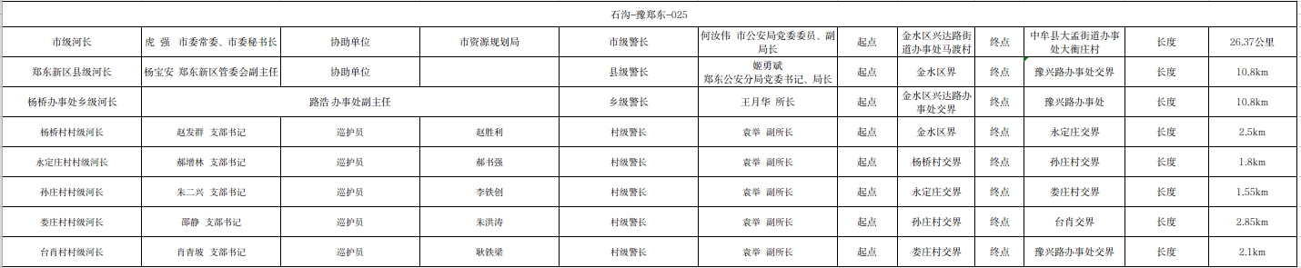 关于石沟郑东新区杨桥办事处段河长、警长名单的公示(石沟-豫郑东-025)