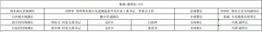关于象湖河长、警长名单的公示(豫郑东-035)