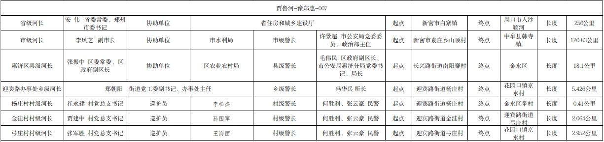 关于贾鲁河惠济区迎宾路办事处段河长、警长名单的公示(贾鲁河-豫郑惠-007)