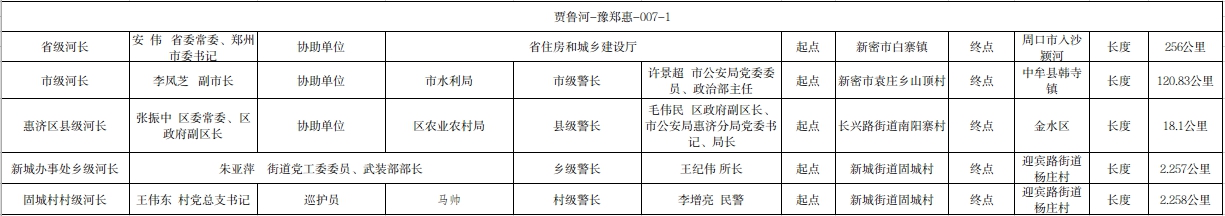 关于贾鲁河惠济区新城办事处段河长、警长名单的公示(贾鲁河-豫郑惠-007-1)