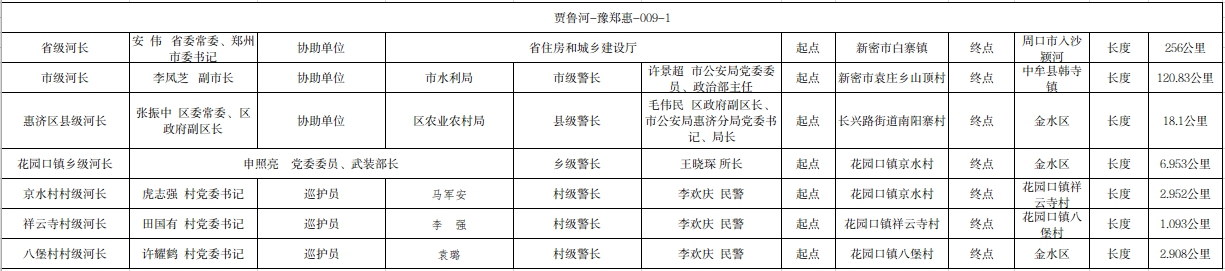 关于贾鲁河惠济区花园口镇段河长、警长名单的公示(贾鲁河-豫郑惠-009-1)