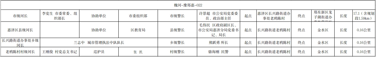 关于魏河惠济区长兴路办事处段河长、警长名单的公示(魏河-豫郑惠-022)