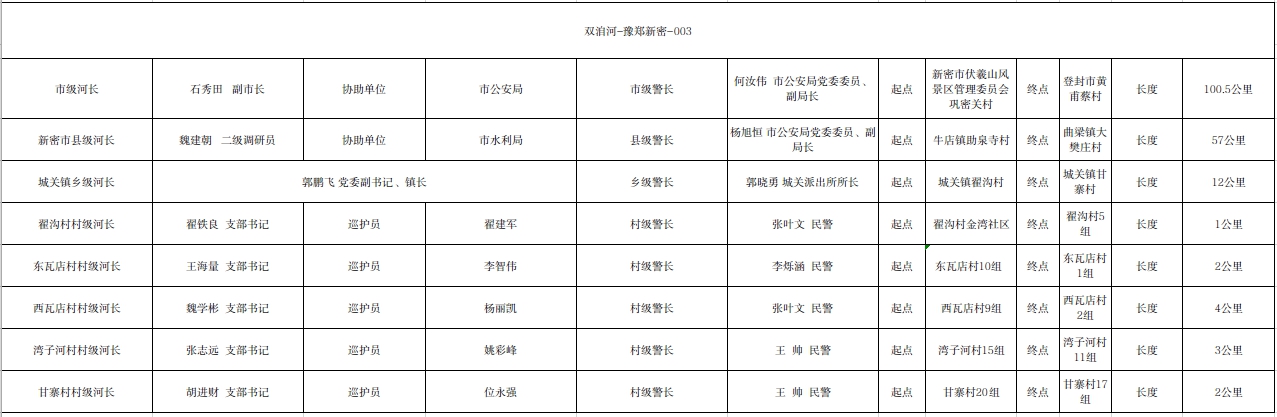 关于双洎河新密市城关镇段河长、警长名单的公示(双洎河-豫郑新密-003)