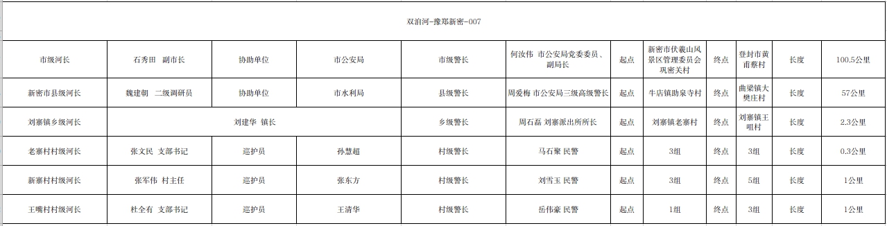 关于双洎河新密市刘寨镇段河长、警长名单的公示(双洎河-豫郑新密-007)