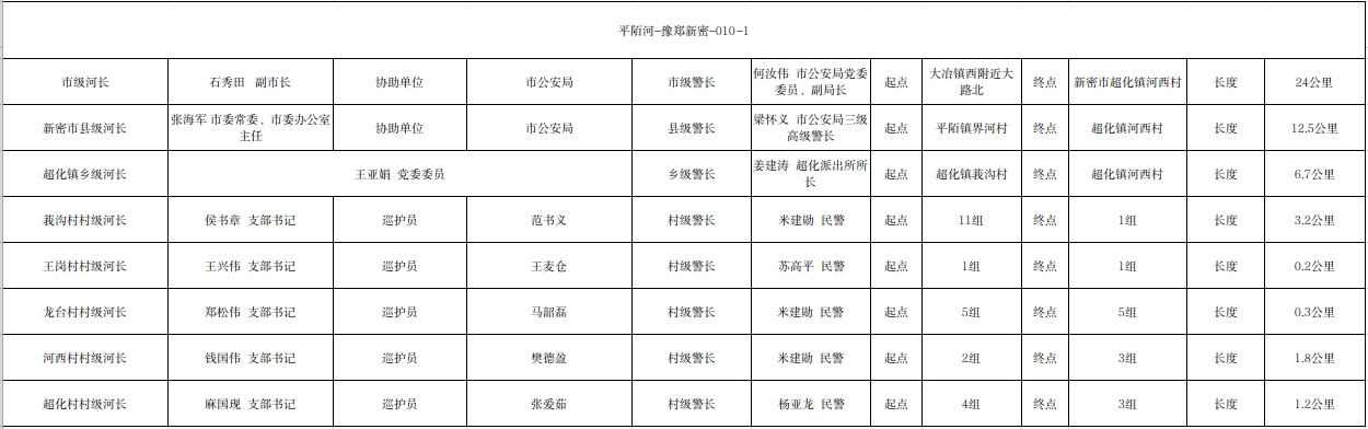 关于平陌河新密市超化镇段河长、警长名单的公示(平陌河-豫郑新密-010-1)