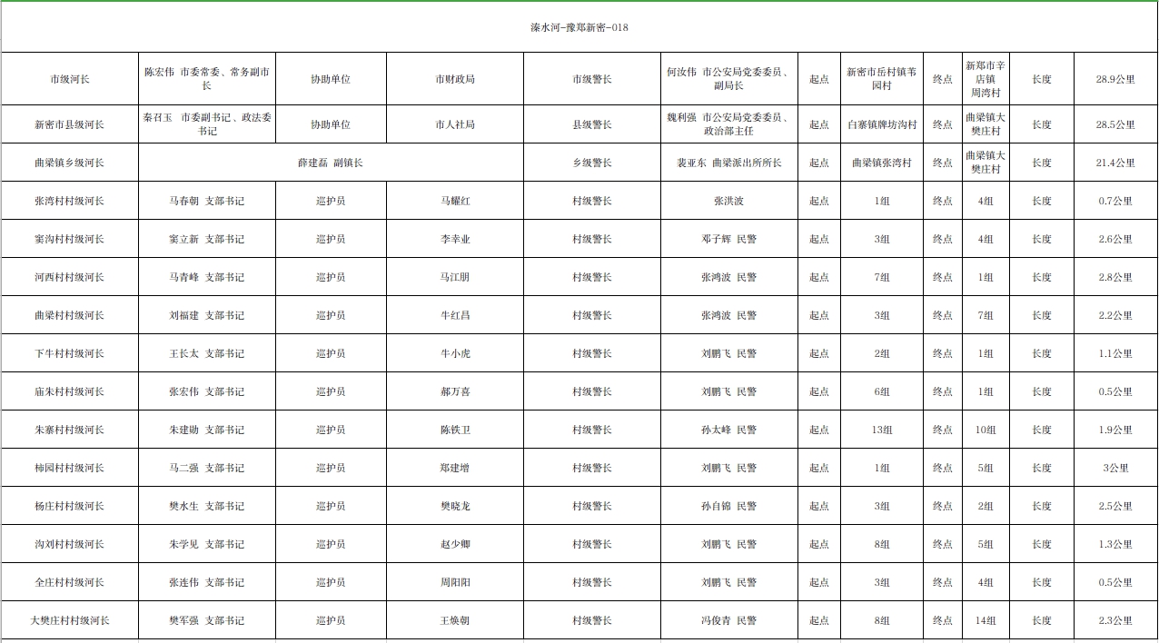 关于溱水河新密市曲梁镇段河长、警长名单的公示(溱水河-豫郑新密-018)