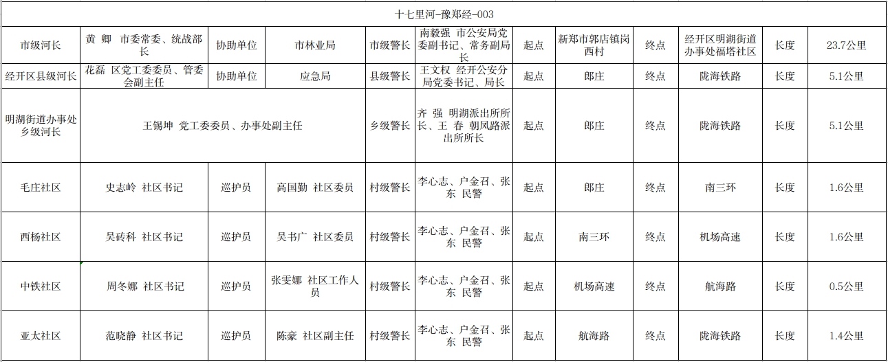 关于十七里河经开区明湖办事处段河长、警长名单的公示(十七里河-豫郑经-003)