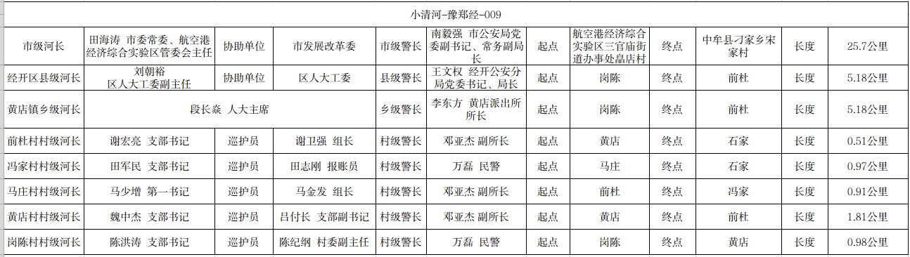 关于小清河经开区黄店镇段河长、警长名单的公示(小清河-豫郑经-009)