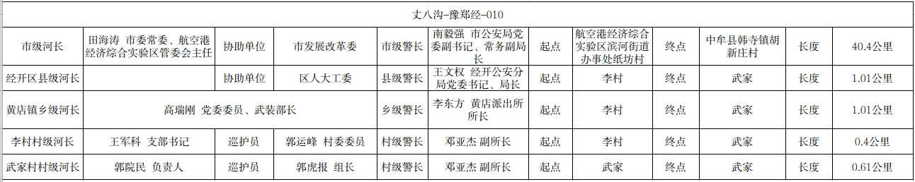 关于丈八沟经开区黄店镇段河长、警长名单的公示(丈八沟-豫郑经-010)