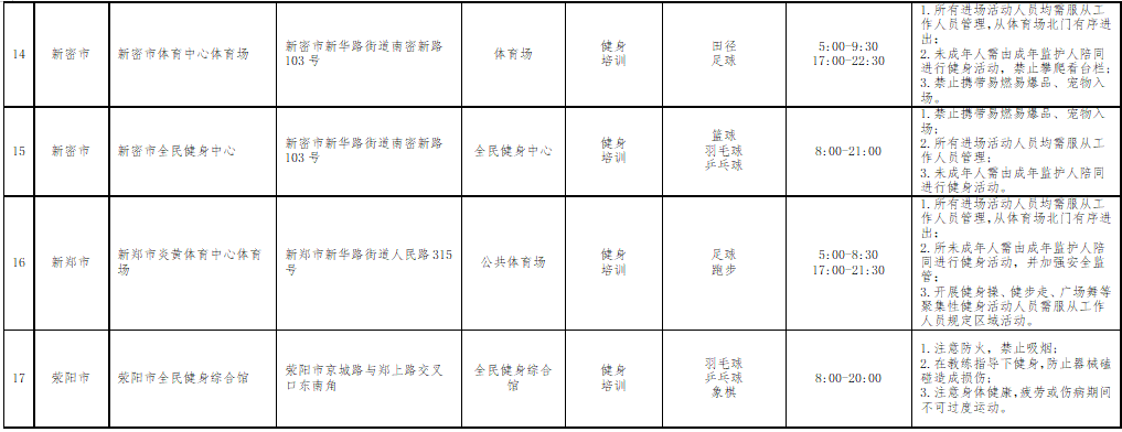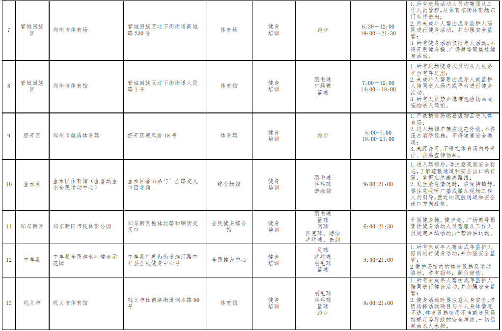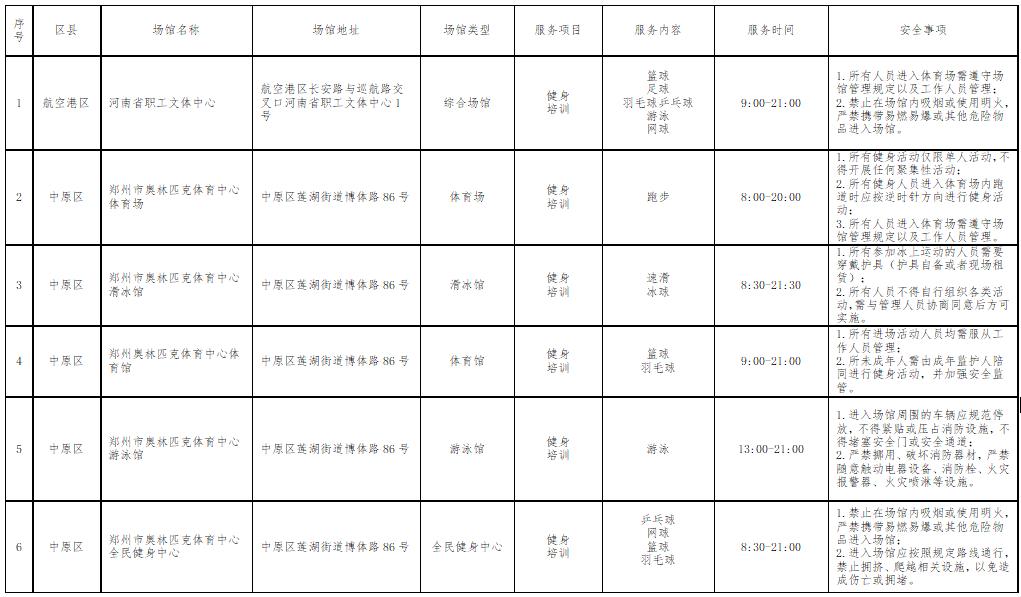 郑州市2025年公共体育场馆名录及服务信息统计表